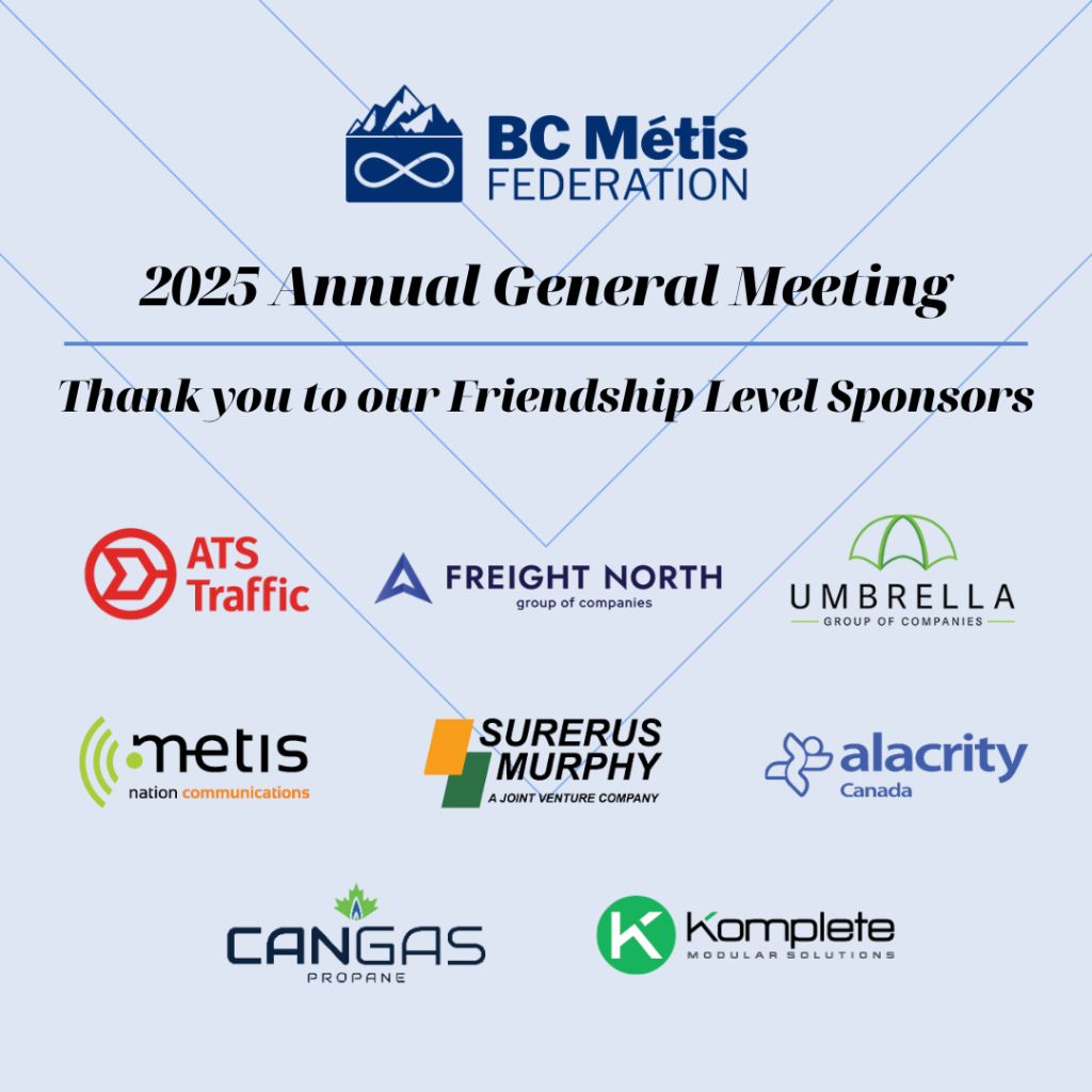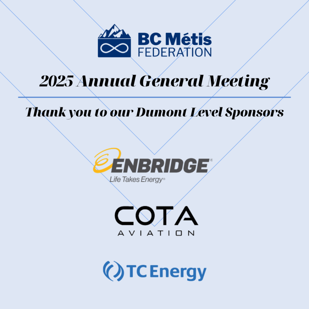 Save the date! The BC Métis Federation (BCMF) will be holding its annual general meeting (AGM) in October in Kelowna at the Four Points Hotel. Saturday the 25th will feature committee meetings and the evening celebration dinner. The AGM proper will be held on Sunday, October 26th.
