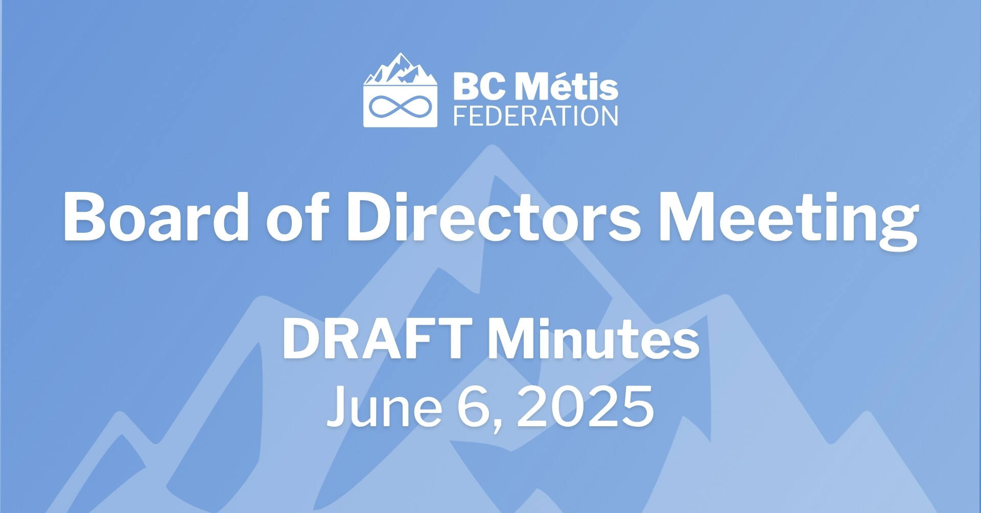 As part of BCMF’s commitment to transparency and responsible governance, the BC Métis Federation (BCMF) makes all Board of Directors meeting minutes publicly available. The draft minutes from the most recent BCMF Board of Directors meeting, held on June 6th, 2025, are now accessible online.