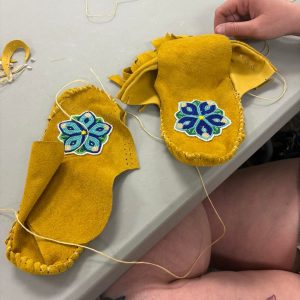 Held every Tuesday evening, the workshop brought together participants to learn traditional skills and handcraft their own pair of moccasins in a warm, community-focused setting. Over the course of the month, attendees stitched, shared stories, and connected over culture and creativity.