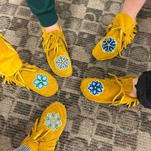Throughout the month of June, the BC Métis Federation and the Peace Region Métis Community Association (PRMCA) hosted a four-part Moccasin Workshop led by artist Linda Van Weirigan.